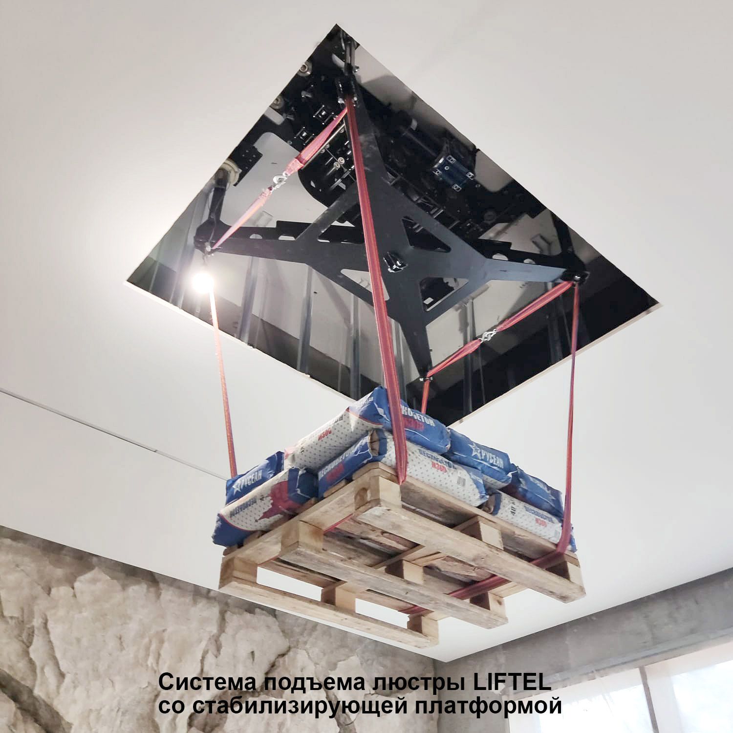 Система подъема люстры со стабилизирующей платформой