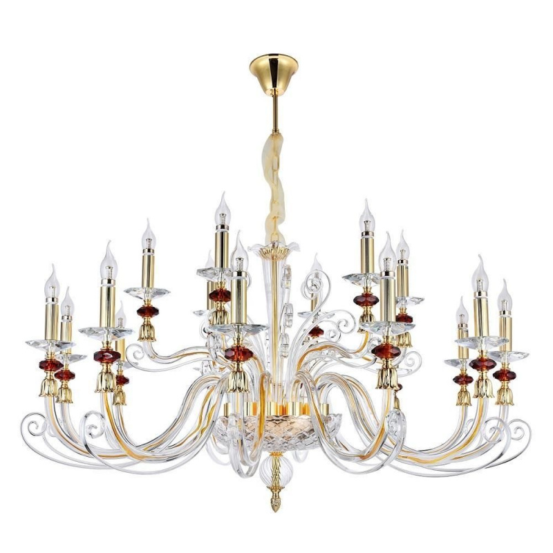 Люстра Crystal Lux CATARINA SP12+6 GOLD/TRANSPARENT-COGNAC